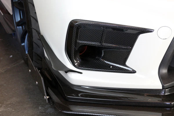 These APR Front Bumper Canards are made using pre-pregnated carbon fiber manufacturing processes, for high strength and low weight. -