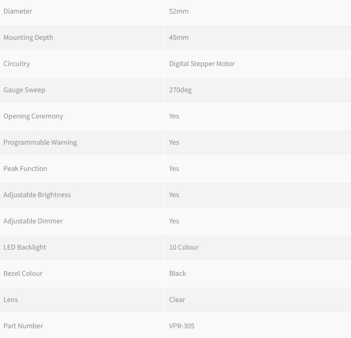Raceworks gauges contain an analogue face, with digital circuitry. They offer many motorsport oriented functions, all of which are accessed by a single button on the face. They are perfect for vehicles that don’t get used often, and may have the power killed completely in between infrequent drives, because all settings are hard coded into memory. They offer daisy chain wiring, meaning common wires such as power, ground and illumination only need to be connected to one gauge in a set, and a simple piggyback cable runs between each gauge. All Raceworks gauges are suitable for 12V applications only. Backlight colours are Red, Green, Blue, Yellow, Purple, Teal, Cool White, Pink, Warm White and Orange.